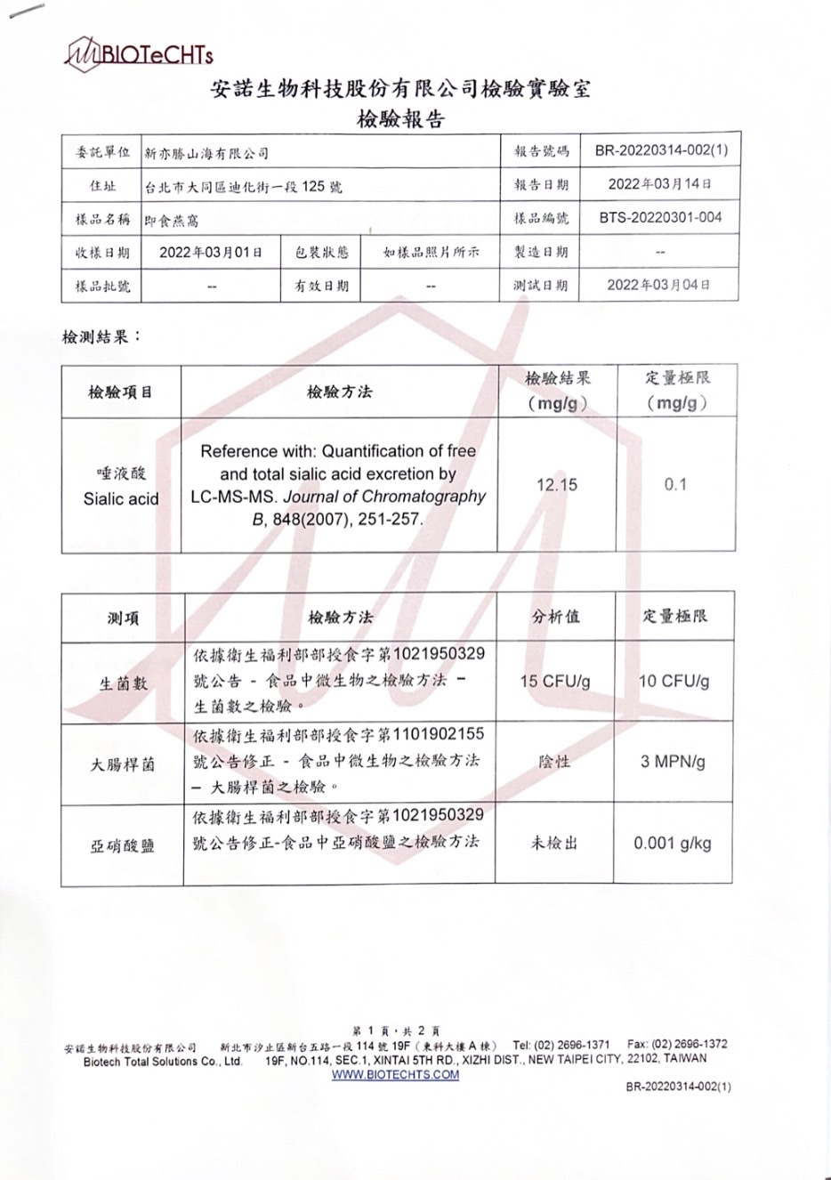 (4)亞硝酸鹽: 未檢出 (未經漂白)