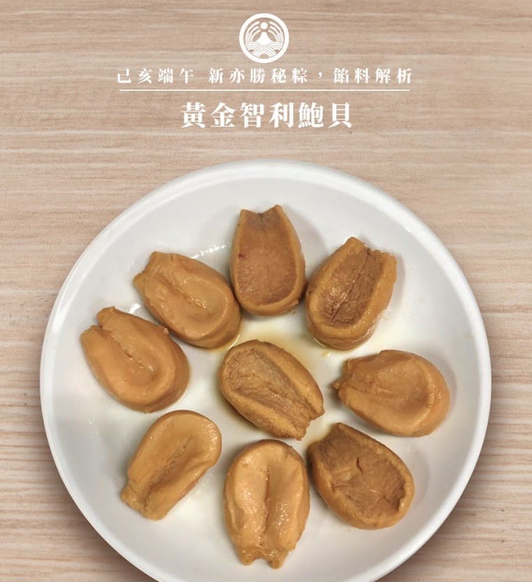 #黃金鮑👉選用智利甜鮑貝,肉厚質軟、有點Q彈,以佐港式醬汁鹵制,可以吃到鮑貝的鮮海味,一整顆包進粽子裡,超大的滿足感呀~