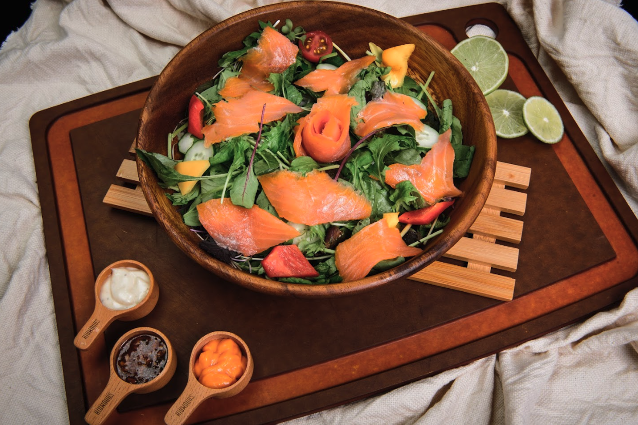 ✅ 以天然木材煙燻,香鹹適中,搭配各種鮮蔬沙拉清爽開胃